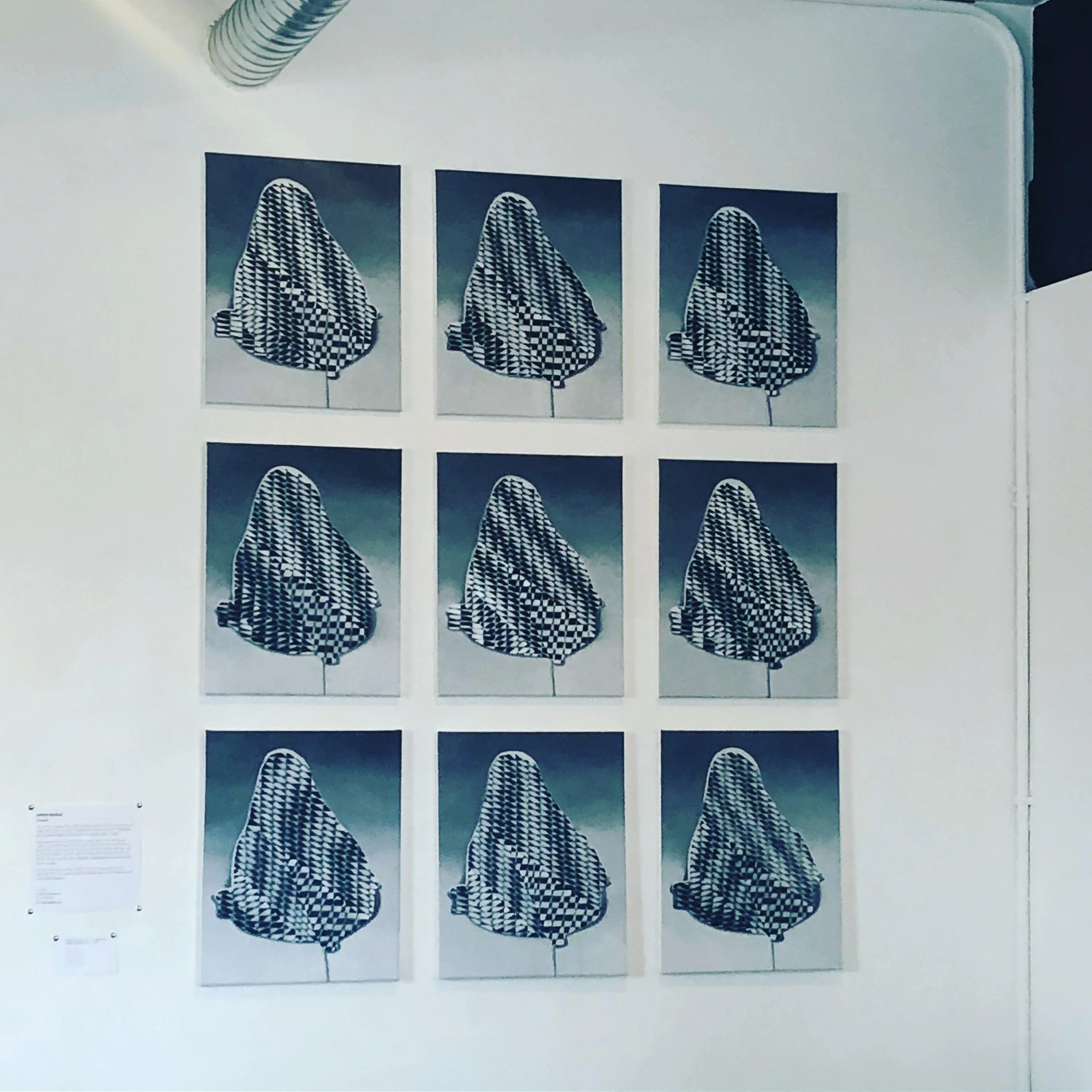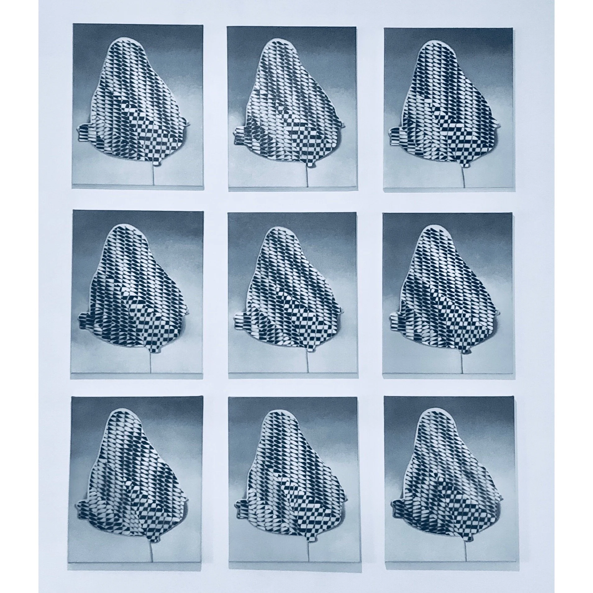 This scan has been taken as source for these 9 unique paintings. Here Riddle has framed a series of 9 inkjet copies of this